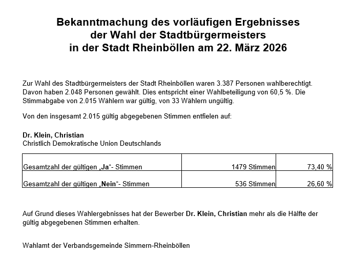 Neuwahl Stadtbürgermeister/in der Stadt Rheinböllen
